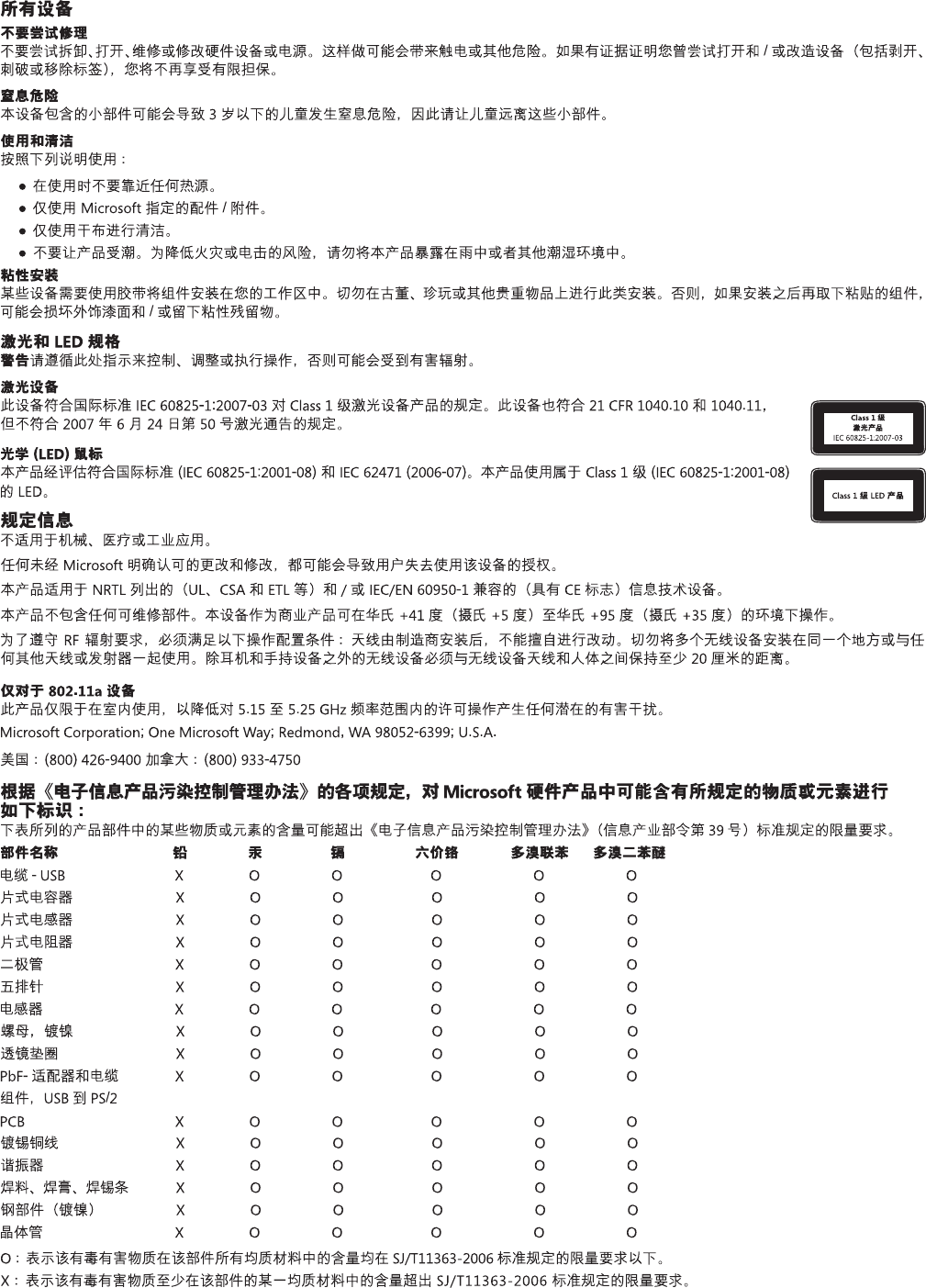レーザーと LED の仕様