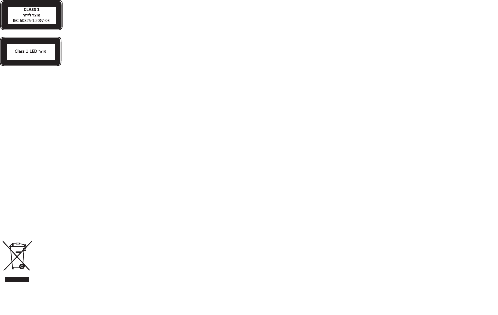 1040.11 -ו 21 CFR 1040.10 םע םג םאות הז ןקתה .1 גוסמ רזייל רצומל IEC 60825-1:2007-03 ימואל-ןיבה ןקתה תושירדב דמוע הז רצומ